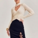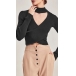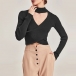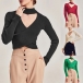 Sexy Mock Neck Long Sleeve Front Cutout Cross Knitted Top