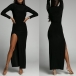 Sexy Mock Neck Long Sleeve High-Slit Party Dress