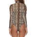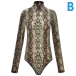 Sexy Mock Neck Long Sleeve Leopard Printed Bodysuit