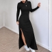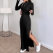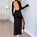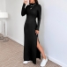 Sexy Mock Neck Long Sleeve Side Slit Backless Maxi Dress