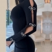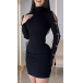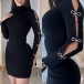 Sexy Mock Neck Long Sleeve with Slit and Rhinestone Bowknot Bodycon Dress