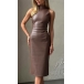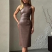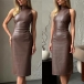 Make a bold and daring statement with this sexy artificial leather PU bodycon dress. The artificial leather material adds a touch of edginess and sophistication to the dress, perfect for a night out or special occasion. The mock neck design adds a modern and chic touch. The bodycon silhouette hugs your curves in all the right places, creating a sleek and sexy look.Wanna have a try?