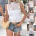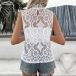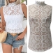 Sexy Mock Neck Sleeveless Semi-through Jacquard Lace Shirt