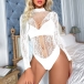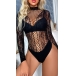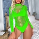 Sexy Net Mesh Spliced Lace Mock Neck Long Sleeve Lingerie Bodysuit
