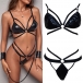Sexy Netted Spliced Black Lace-up Two-piece Lingerie Set