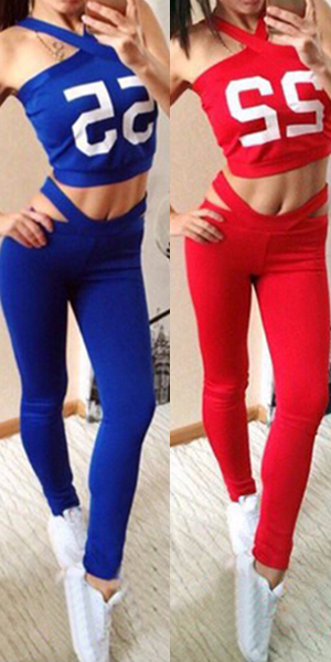 This set with halter crop tops and pants, fashion and sexy. Numeric printed and cross neckline design makes your sexy