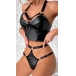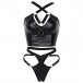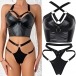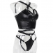 Sexy O-ring Cross-criss Artificial Leather PU Two-piece Lingerie Set