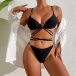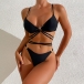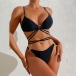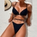 Sexy O-ring Cross-criss Self-tie Two-piece Bikini Set