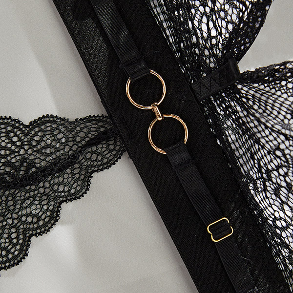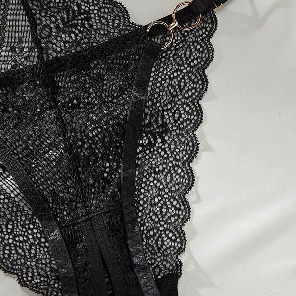 Sexy O-ring Cutout Lace Lingerie Bodysuit