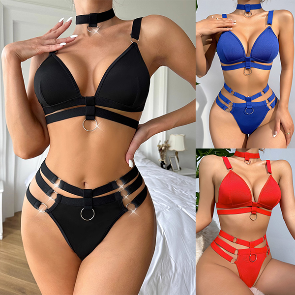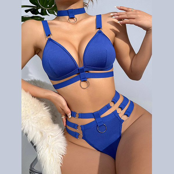 Sexy O-ring Cutout Three-piece Lingerie Set
