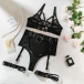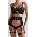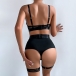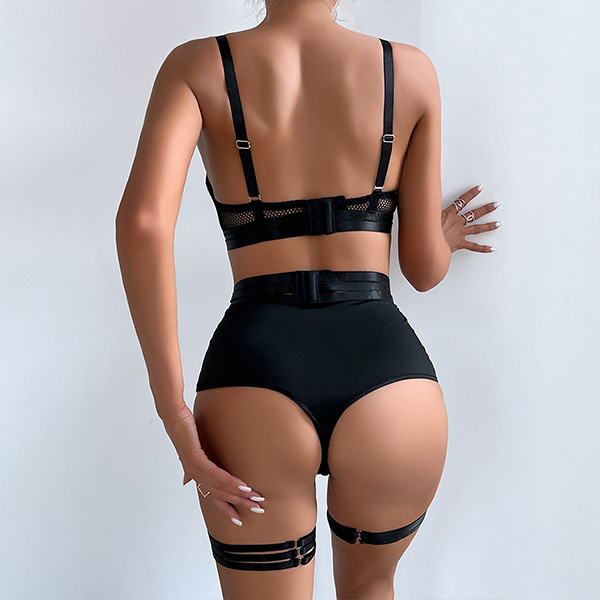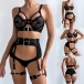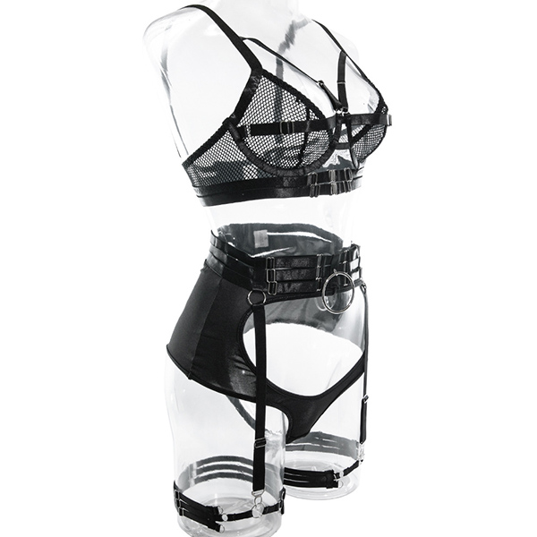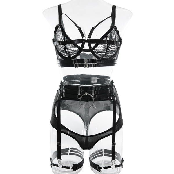 Sexy O-ring Hollowout Mesh-net Lace Three-piece Lingerie Set