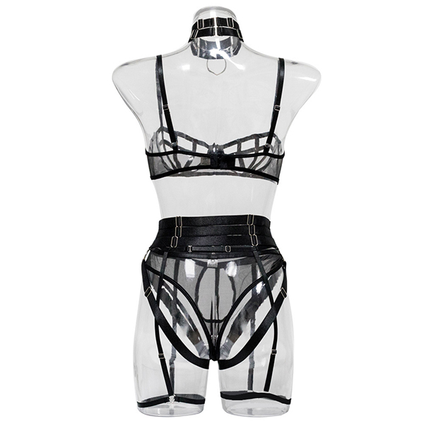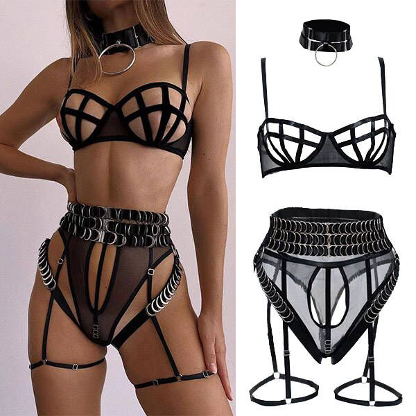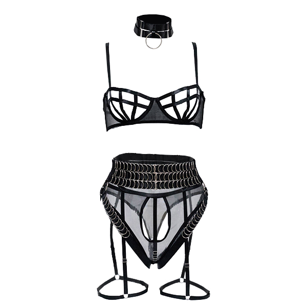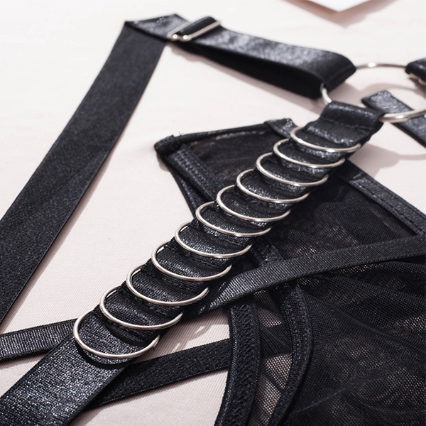 Sexy O-ring Hollowout Three-piece Lingerie Set