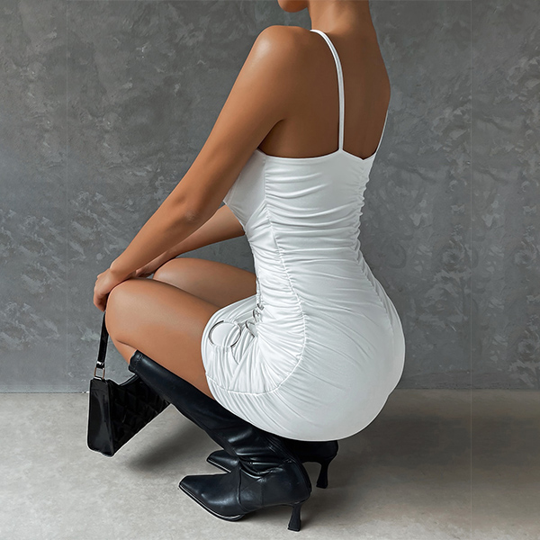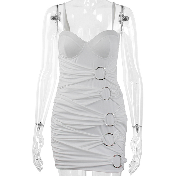 Sexy O-ring Ruched Bodycon Slip Dress