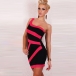 Sexy Oblique Shoulder Backless Slim Fit Striped Dress