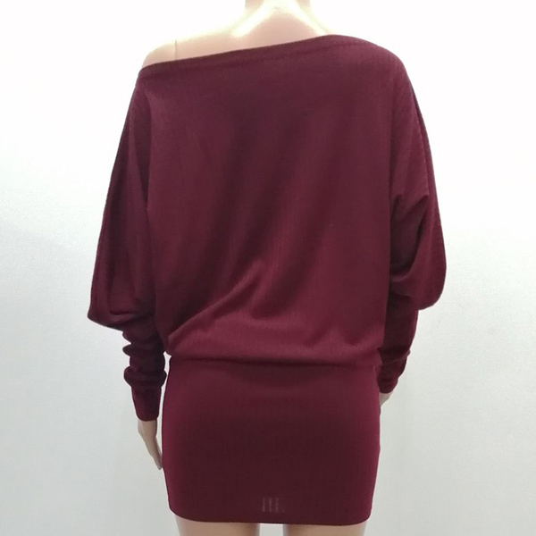 Your style and charm can have an instant boost when you wear this knit dress. Boasts a solid color,the oblique shoulder and dolman sleeve design will make this piece look more stylish and attractive. You can add a sparkle necklace if you wanna enrich your overall dress up.