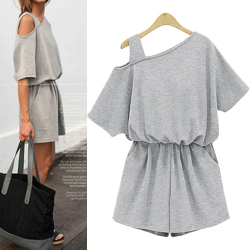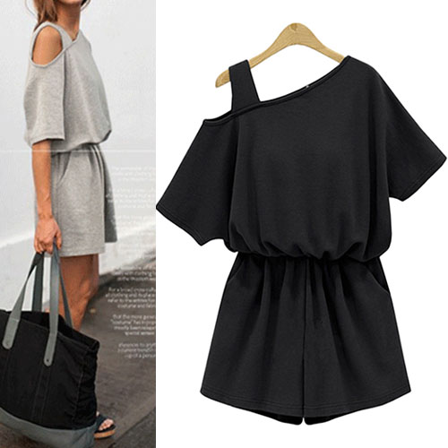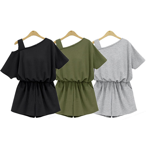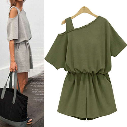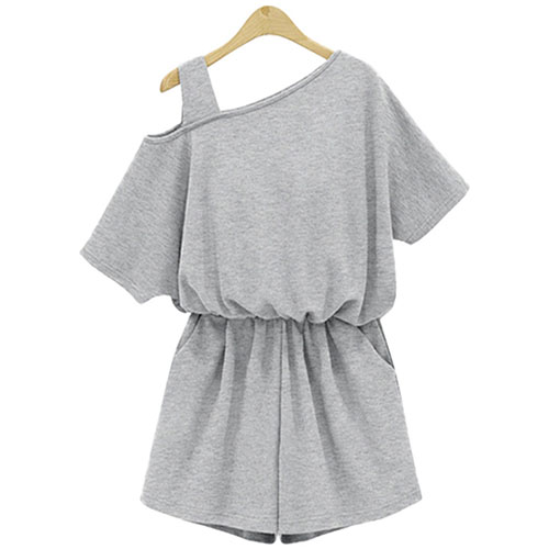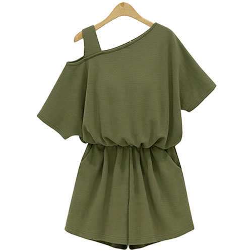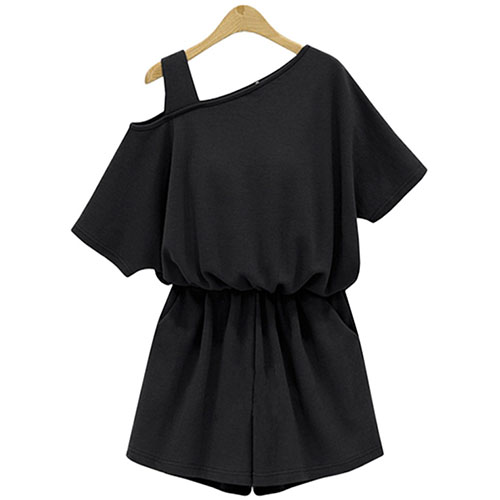 Project a fun and cheeky appeal into your casual days through this romper. Solid color style,its oblique shoulder design adds