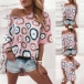 Sexy Oblique Shoulder Half Sleeve Printed Top