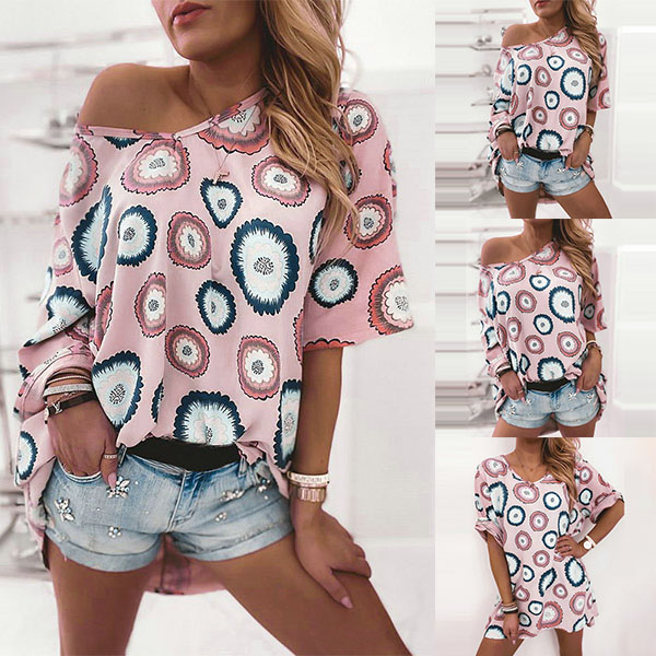 Combines of cozy and stylish vibes,this wonderful top is worth to have a place in your wardrobe. Its chic and eye-catching printed details can help win more eyes. Finished with half sleeve,oblique shoulder and a loose silhouette,this piece is sure to offer you a stylish daily style.