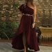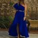 Sexy Oblique Shoulder Irregular Hem Solid Color Party Dress