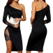 You don't need to wonder why all eyes are on you when you don this dress! Its alluring design details like oblique shoulder,slit hem and lace spliced design make this piece look so sexy and flirty. For your fancy events like cocktail parties or weekend gatherings,this dress can be a good choice.