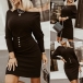 Sexy Oblique Shoulder Long Sleeve Button High Waist Slim Fit Dress