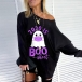 Sexy Oblique Shoulder Long Sleeve Cartoon Printed Sweatshirt
