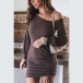 Sexy Oblique Shoulder Long Sleeve Side-drawstring Slim Fit Dress