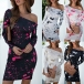 Sexy Oblique Shoulder Long Sleeve Slim Fit Printed Dress