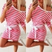 Sexy Oblique Shoulder Long Sleeve Slim Fit Striped Dress