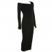 Thanks to the flattering black tone and fit silhouette,your perfect figure can have a full display in this dress. The oblique shoulder and slit hem design will make this piece full of sexy and flirty vibes. Save this little stunner for your night events and weekend gatherings.