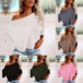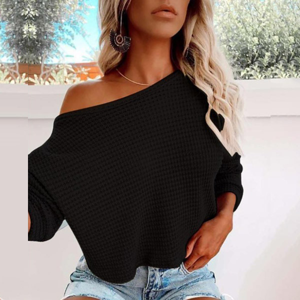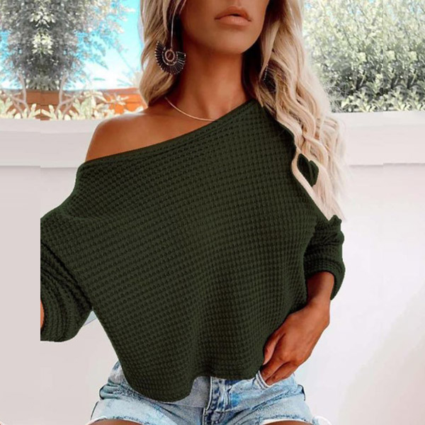 Sexy Oblique Shoulder Long Sleeve Solid Color Knit Top