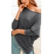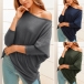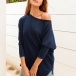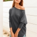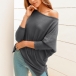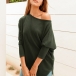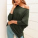 Sexy Oblique Shoulder Long Sleeve Solid Color Loose Knit Top