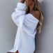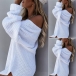 Feel a little cold? Then this sweater dress can easily strike your mind. Solid color style,the oblique shoulder design can lend you some sassy and flirty vibes,while its loose silhouette and cozy knitted fabric can give you a warm and comfortable day. Matching with your over-the-knee boots would be a wise choice.