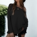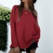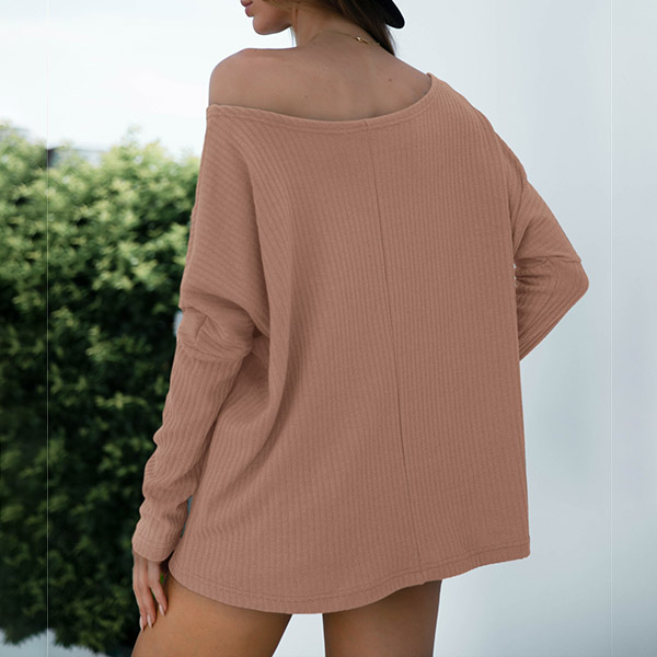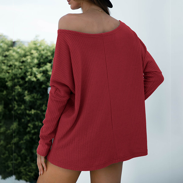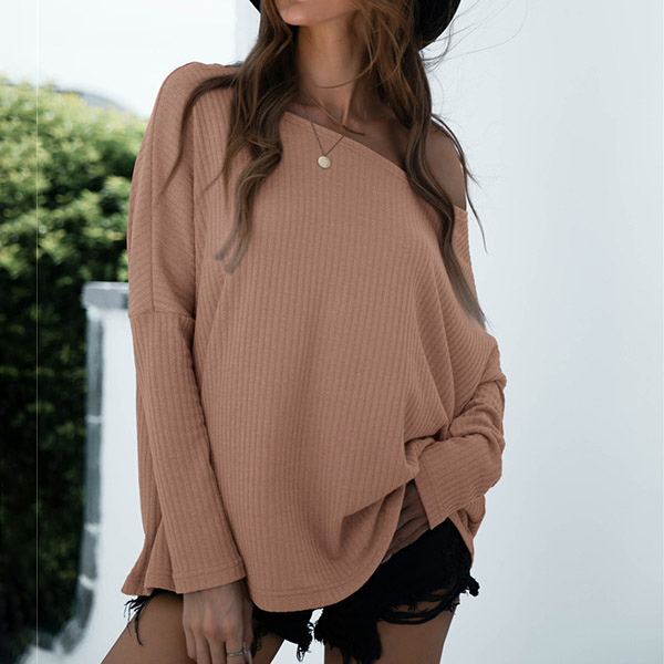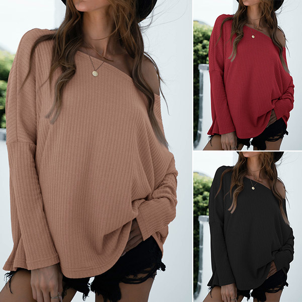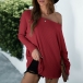 Sexy Oblique Shoulder Long Sleeve Solid Color Loose T-shirt