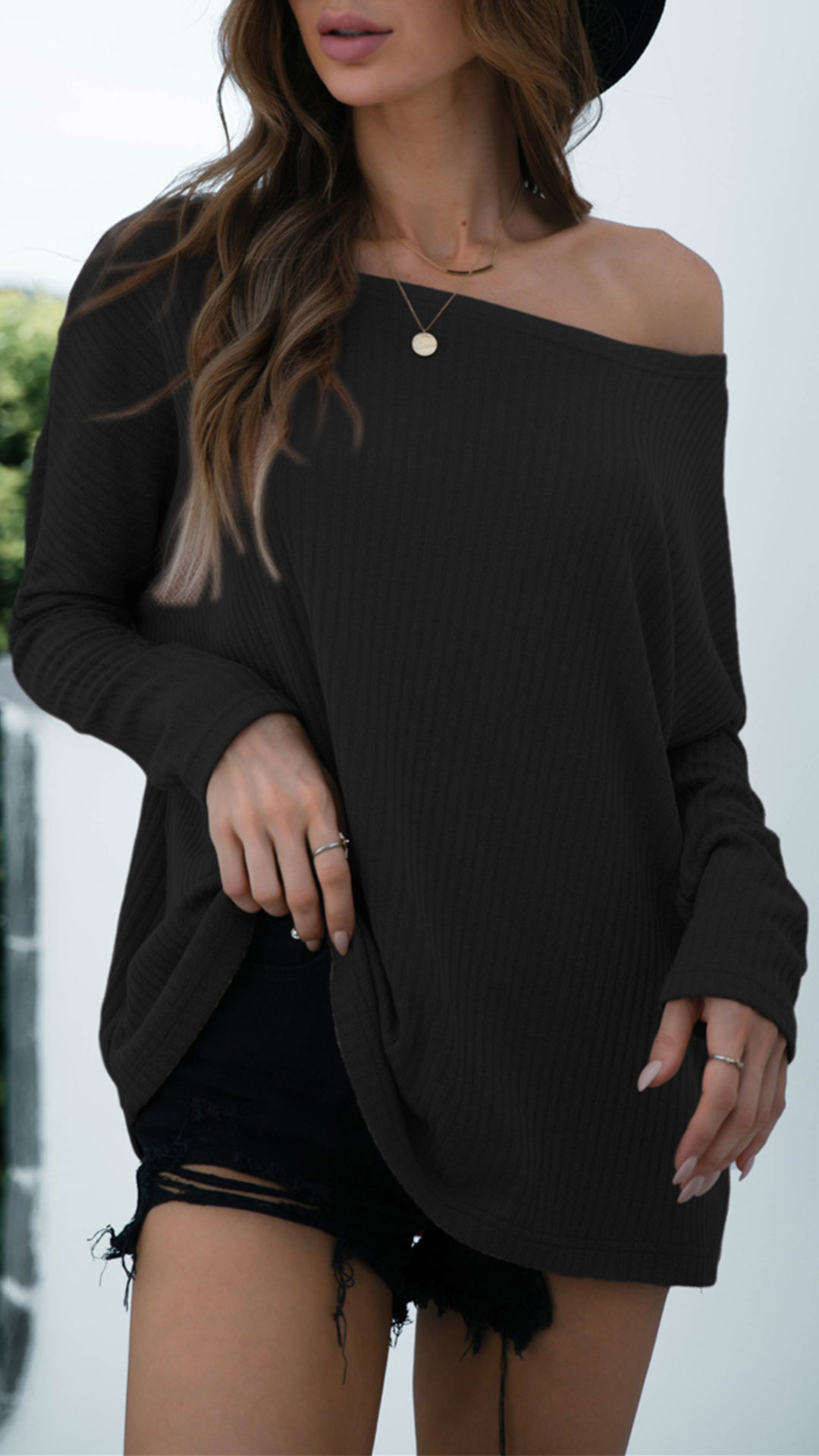 This t-shirt comes with a solid color,with long sleeve,soft fabric and a loose silhouette,which can give you an all-day comfort. Then what makes this piece look so stylish and attractive? It owes to the oblique shoulder design,which can lend you some sassy and flirty vibes. You can add a sparkle necklace if you wanna enrich your dress up.
