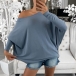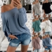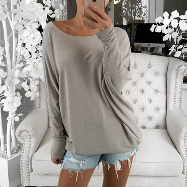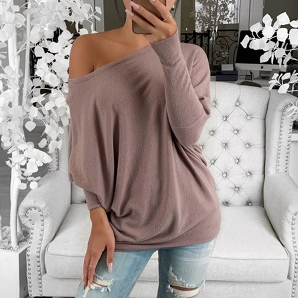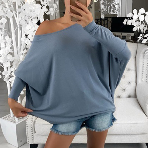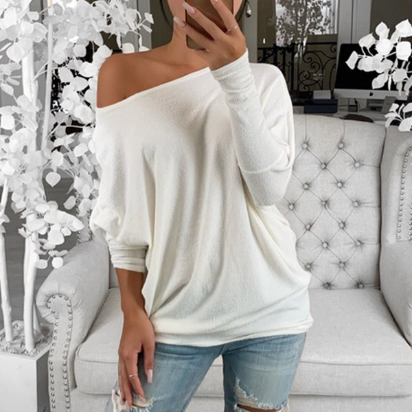 Sexy Oblique Shoulder Long Sleeve Solid Color Loose T-shirt