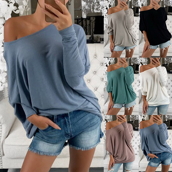 Compared with your other t-shirts,this piece can bring you more style. Solid color style,the oblique shoulder design can lend you some sexy and flirty vibes. Crafted from soft and breathable fabric,with long sleeve,round neck and a loose silhouette,this t-shirt is sure to give you an all-day comfort.