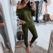 Sexy Oblique Shoulder Long Sleeve Solid Color Romper