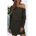 Sexy Oblique Shoulder Long Sleeve Solid Color Slim Fit Dress