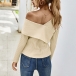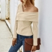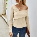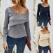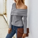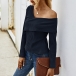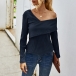 Sexy Oblique Shoulder Long Sleeve Solid Color T-shirt