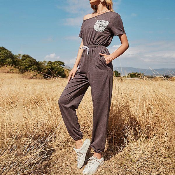 Sexy Oblique Shoulder Short Sleeve High Waist Jumpsuit