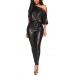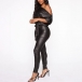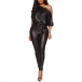You are sure to win more eyes when you dress yourself up with this PU leather jumpsuit. The flattering black tone,high waist and fit silhouette design can showcase your slender figure,while the oblique shoulder design can lend you a dash of sexy and flirty vibes. You can just slip into this piece to express your beauty and charm.