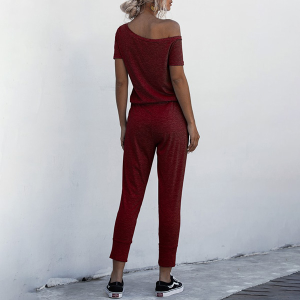 Wanna update your daily style? Then let this jumpsuit help you. It comes with a solid color,the oblique shoulder design will lend you a dash of sexy and feminine vibes,while the high waist and clean silhouette design will showcase your slender figure. Just slip into this piece to start your wonderful day.