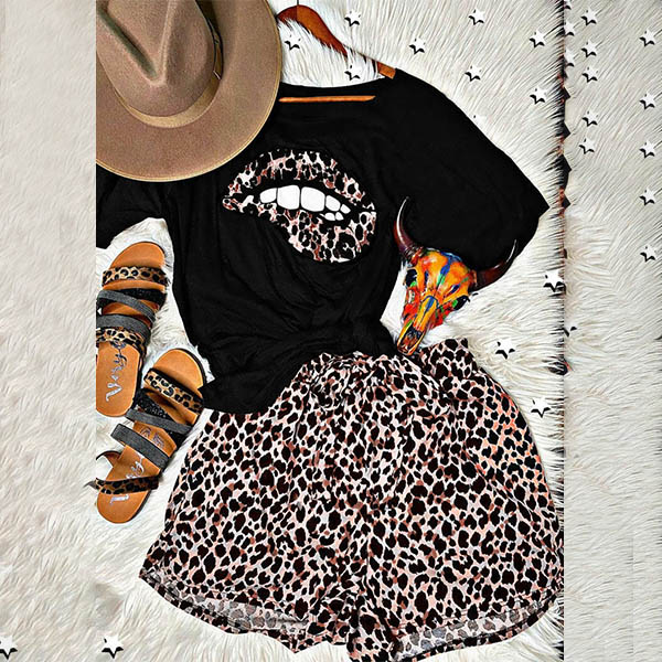When you don't want do your daily wardrobe match,this two-piece set can be a perfect solution. Including a short sleeve t-shirt and a shorts,the oblique shoulder and leopard printed details make it look more attractive. Meanwhile,its soft and breathable fabric can ensure you a comfortable day. So why not enrich your summer wardrobe with this two-piece set?