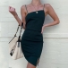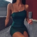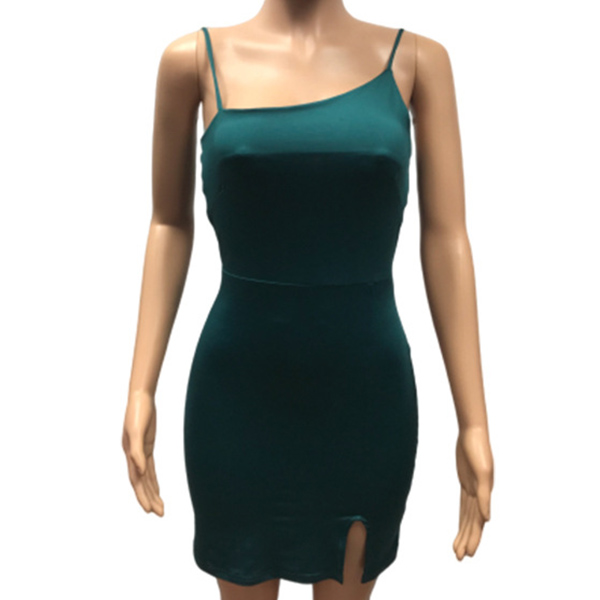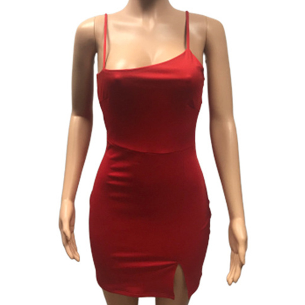 You can easily arouse a splash when you dress yourself up with this dress. Sling style,the backless,oblique shoulder and slit hem design make this piece look so sexy and alluring,while the fit silhouette design can expose your seductive curve. No matter when and where you are,you can easily be the focus in this dress.