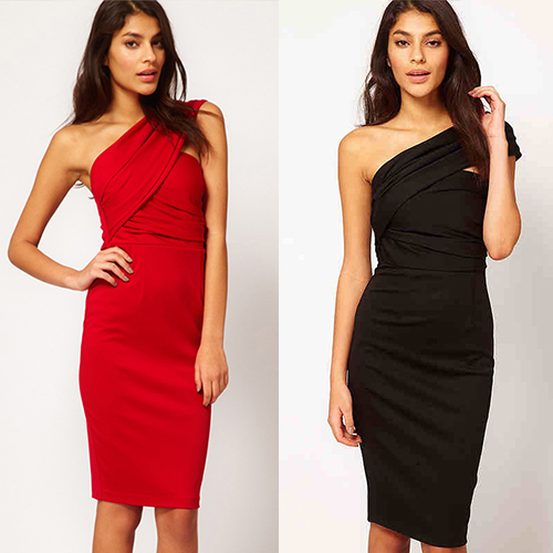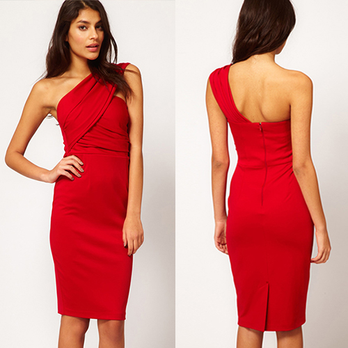 Oblique shoulder style,with fit silhouette can perfect set off your graceful posture. Dress it up with