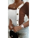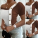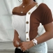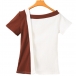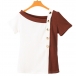 Sexy Oblique V-neck Short Sleeve Contrast Color Slim Fit T-shirt