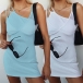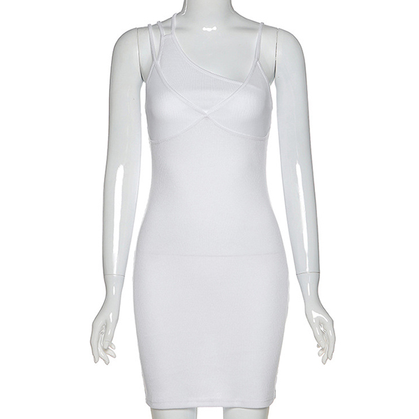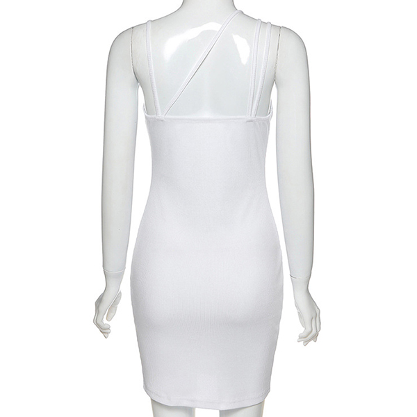 Sexy Oblique V-neck Solid Color Slim Fit Sling Dress