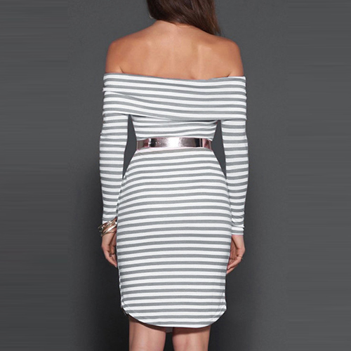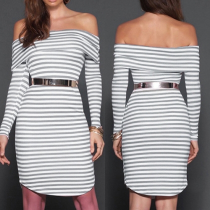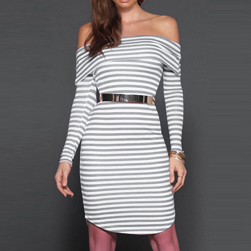 Add this dress to your wardrobe for completing a wonderful classic ensemble. Striped style, with off shoulder,
