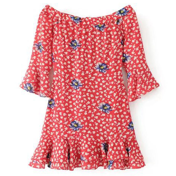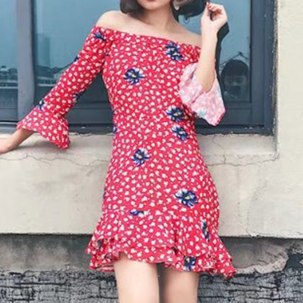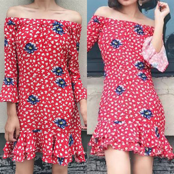 You look so charming and sweet in this dress. Features chic and eye-catching printed pattern,designed with an off-shoulder